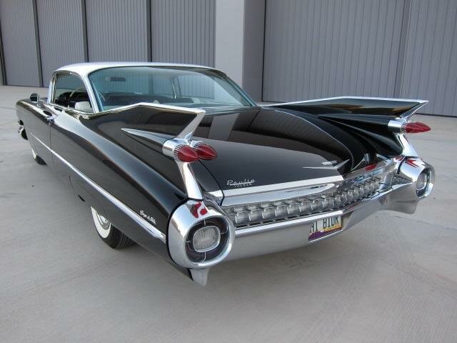 The 1959 Cadillac is remembered for its huge sharp tailfins with dual bullet tail lights, two distinctive rooflines and roof pillar configurations, new jewel-like grille patterns and matching deck lid beauty panels.
